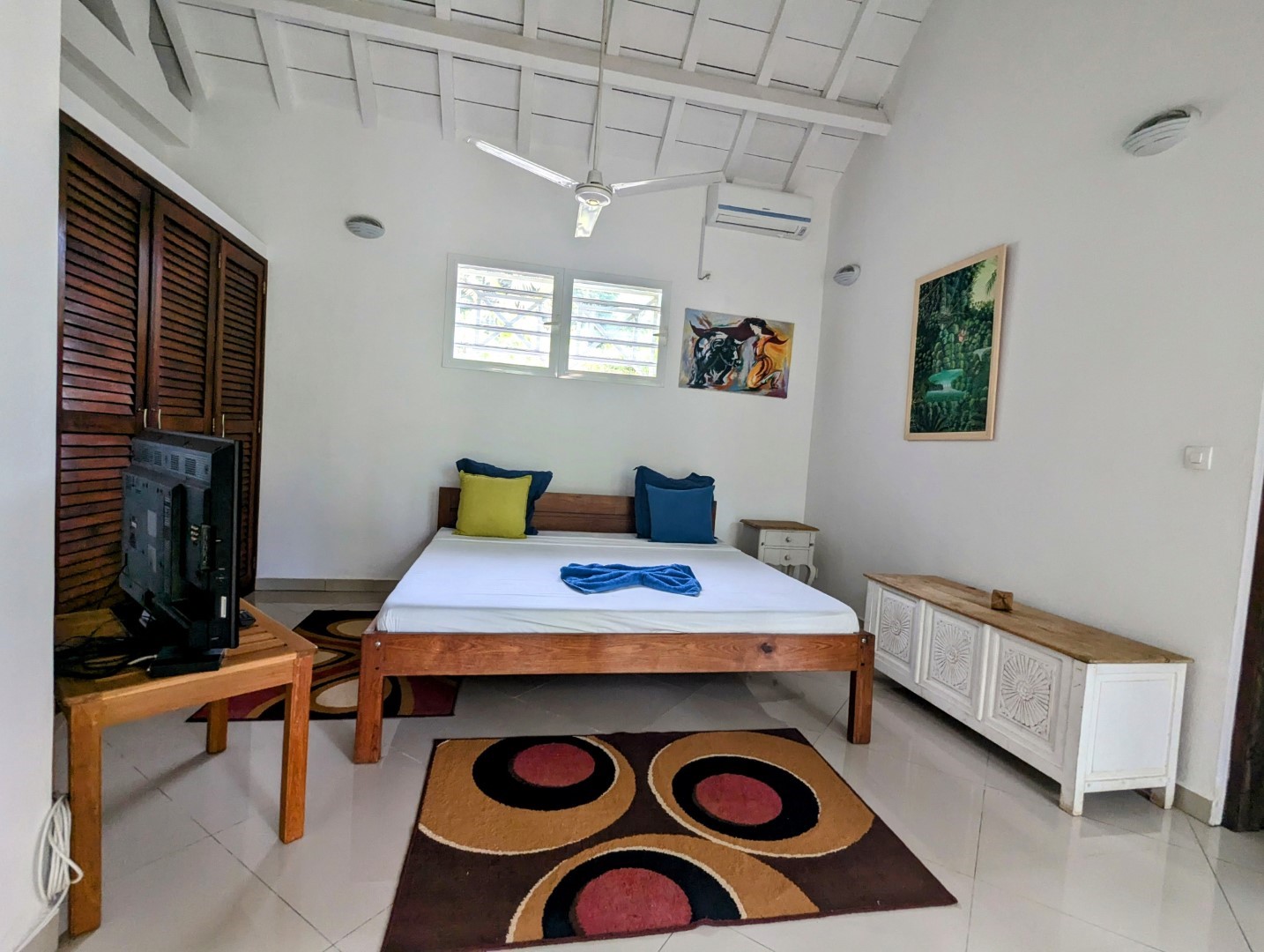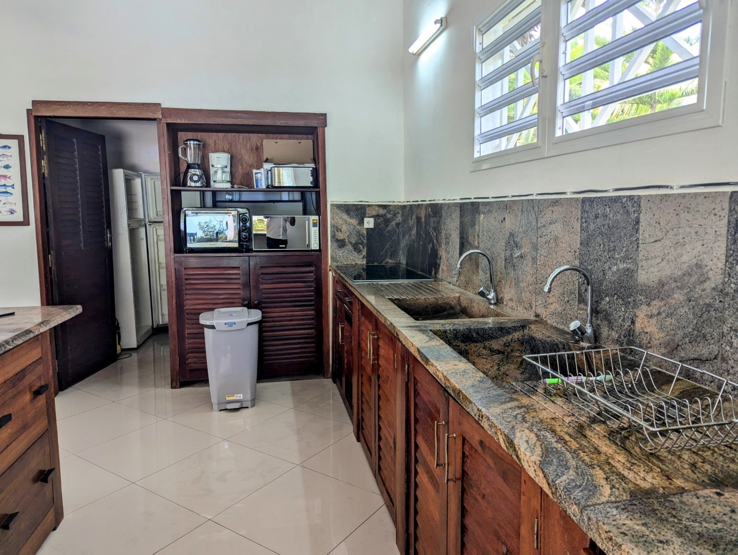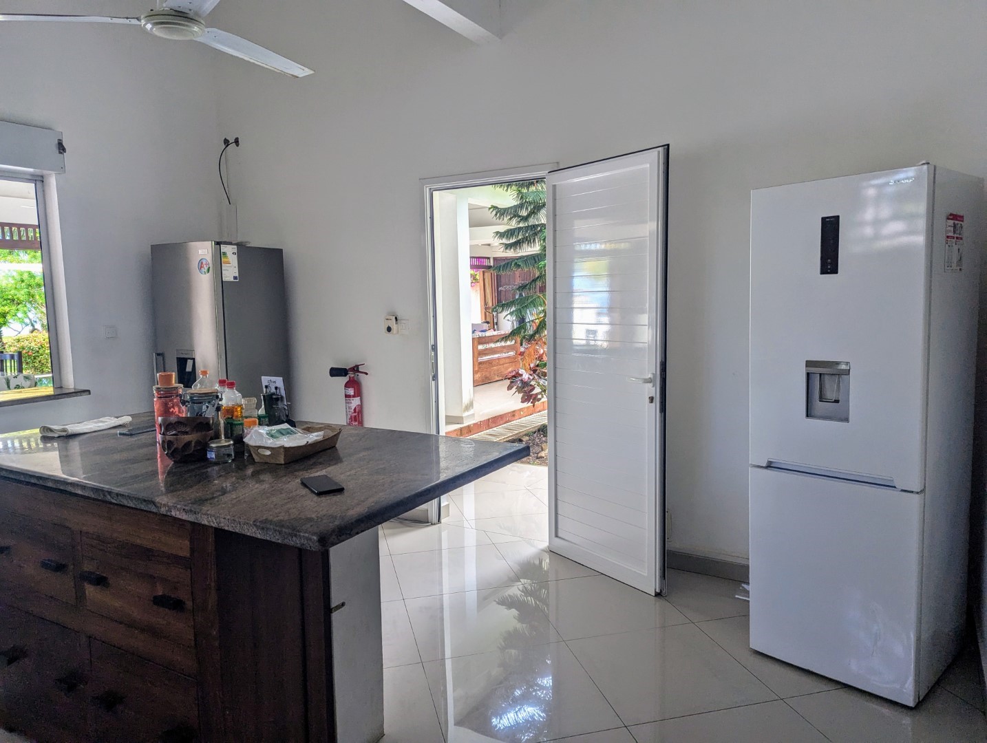 - 1 grande cuisine équipée ouverte avec vue sur mer et jardin + local rangement