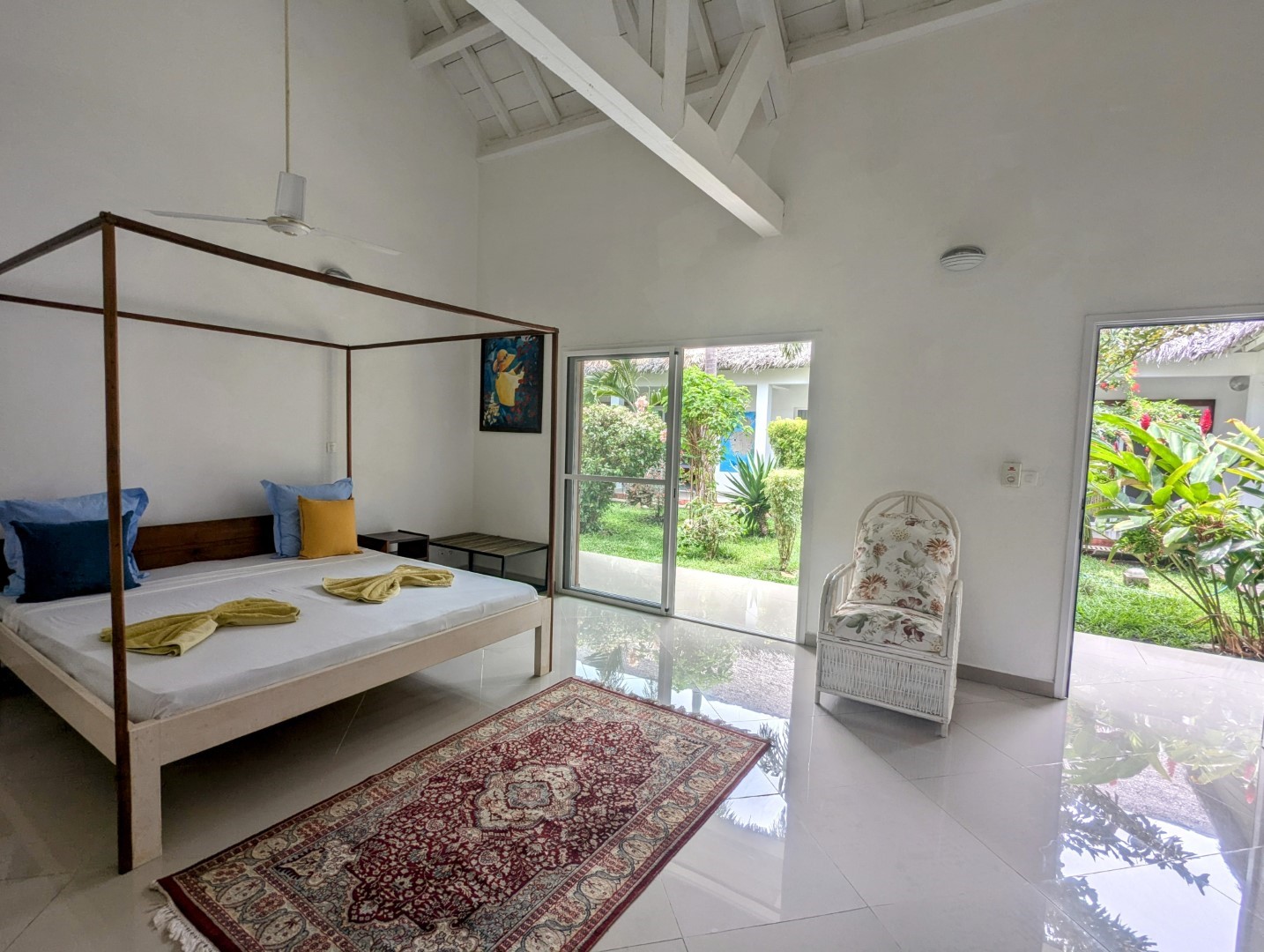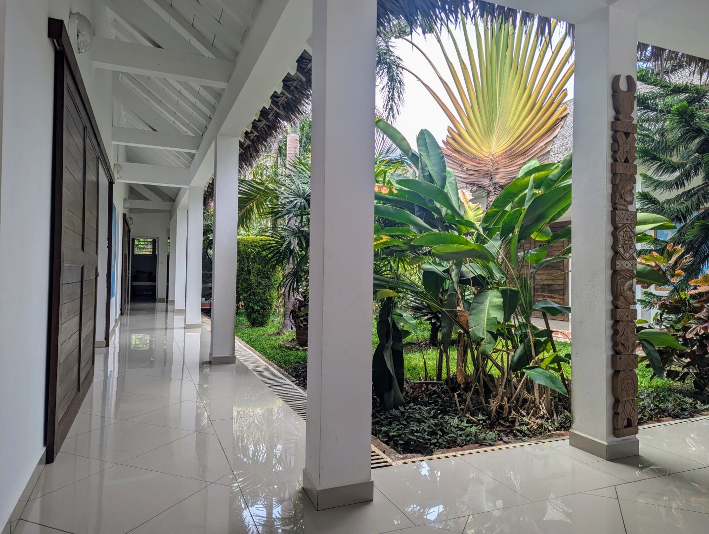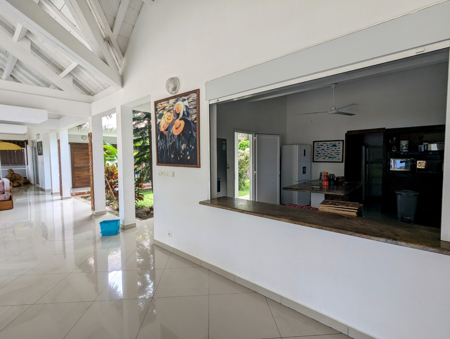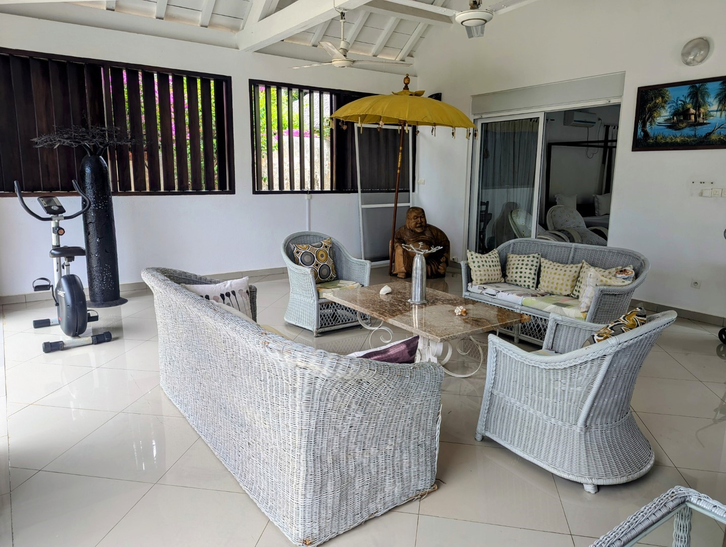- 1 grand séjour ouvert donnant sur une piscine face à un jardin et la plage