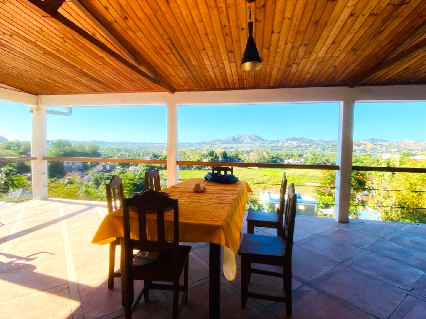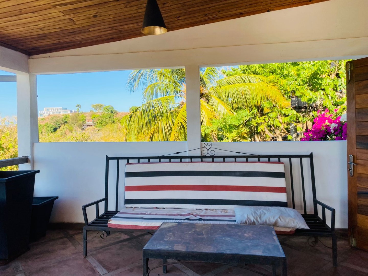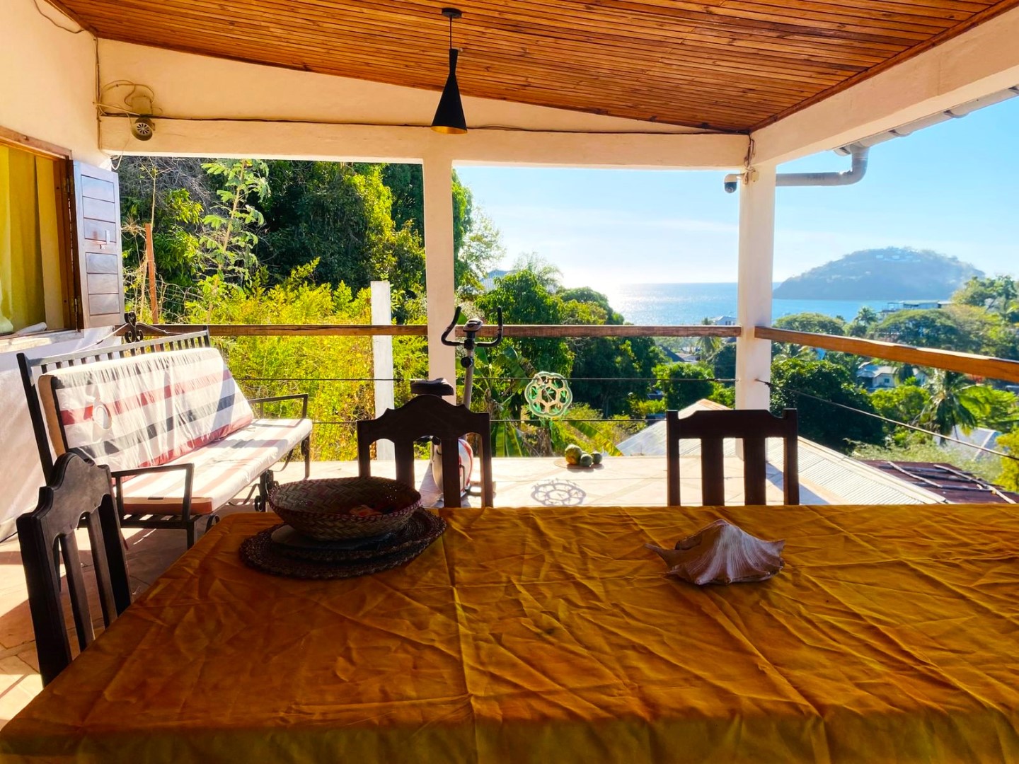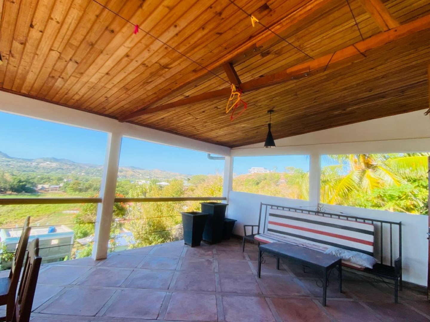 - 1 grande terrasse couverte avec vue directe sur la mer, équipée de meubles