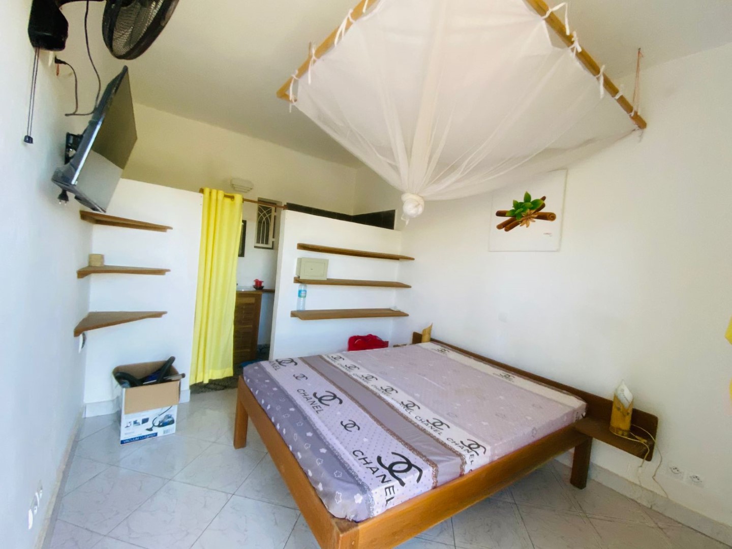 - 1 chambre ventilée avec salle de bain et toilettes