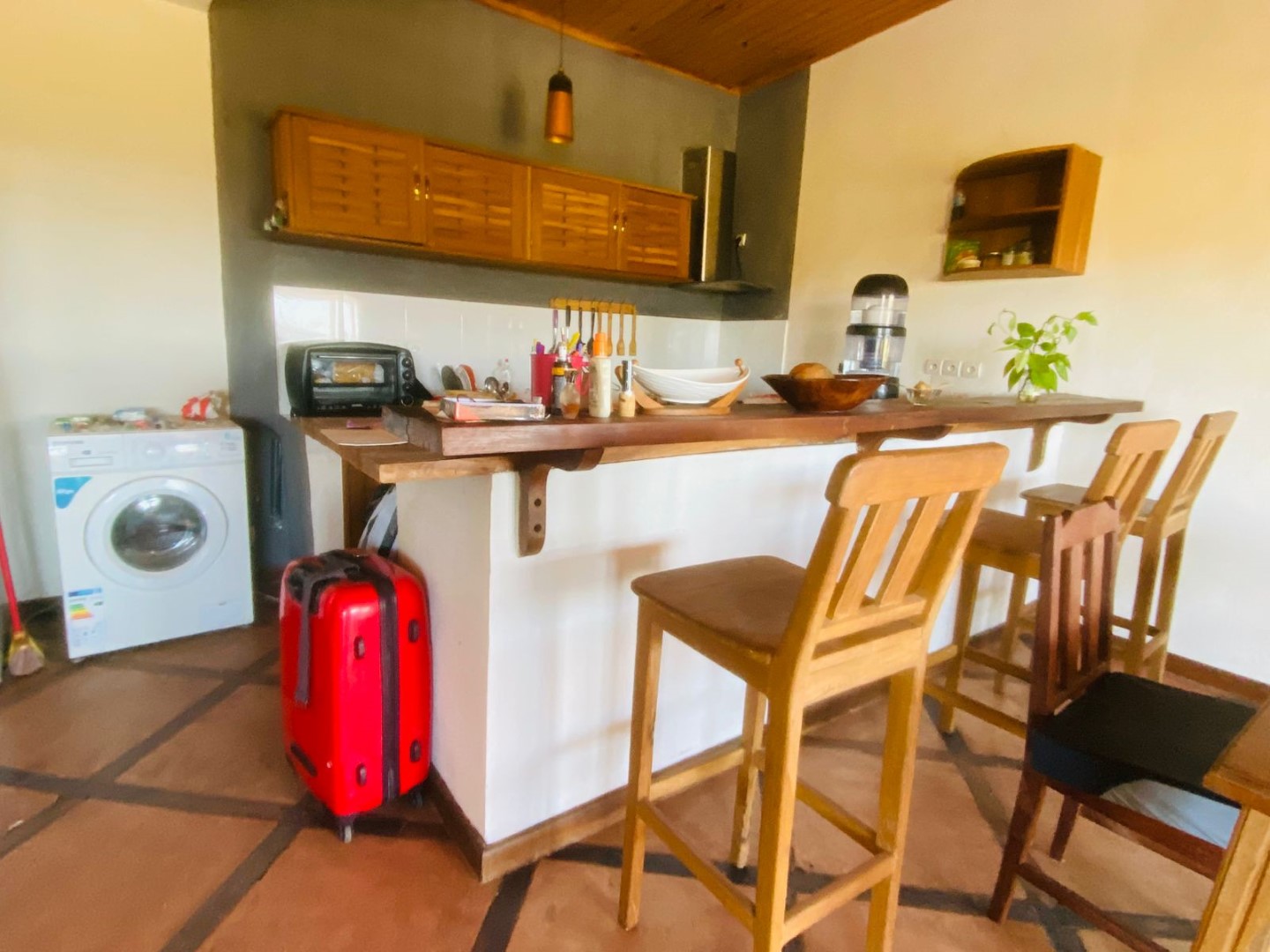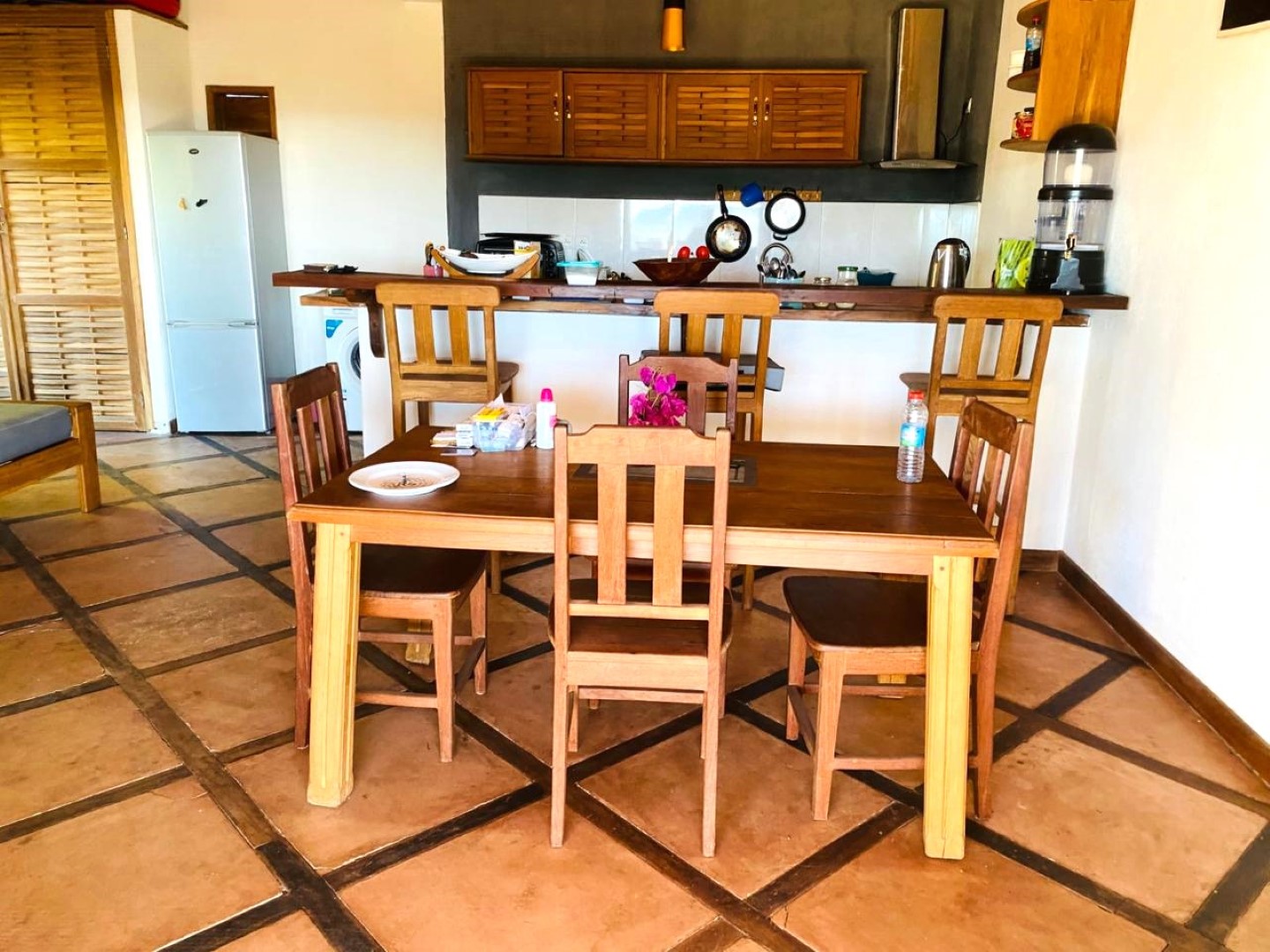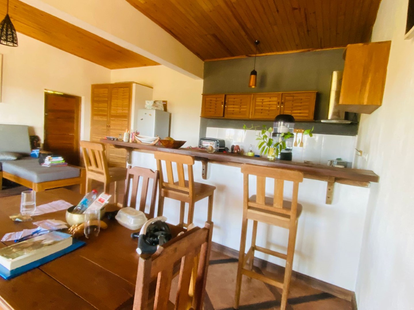 - 1 grand séjour ouvert avec cuisine, donnant sur la terrasse (équipée et meublée)