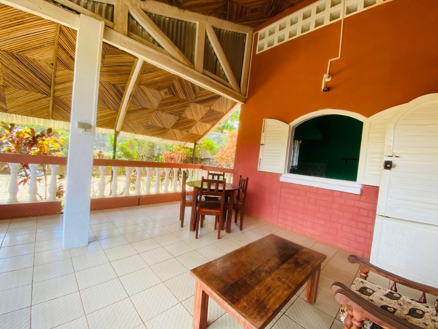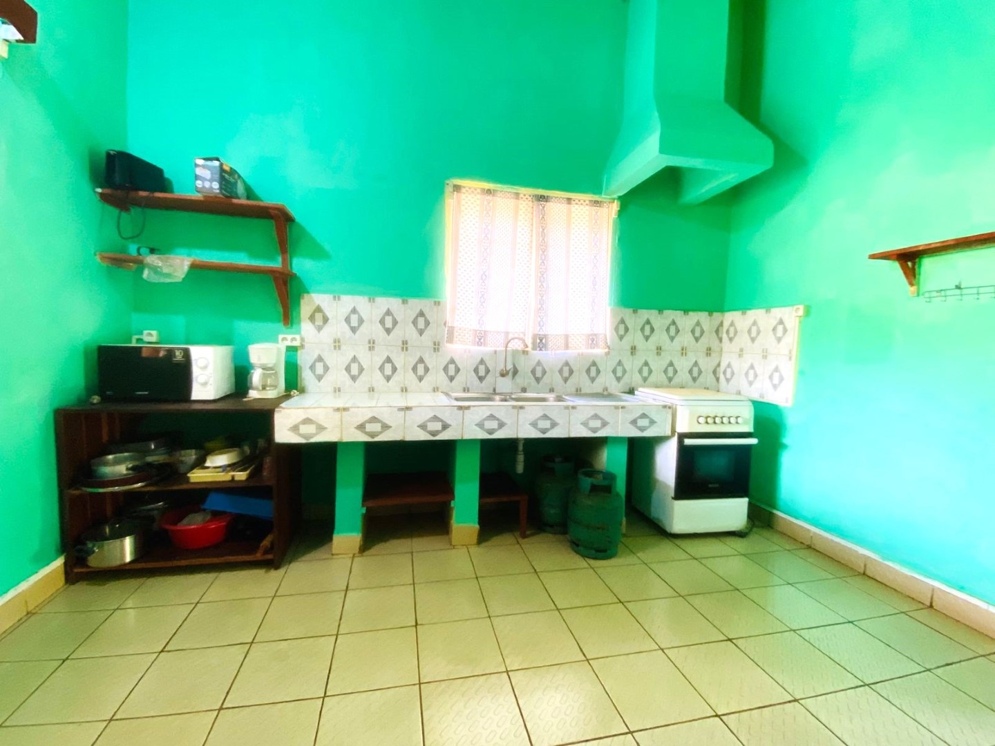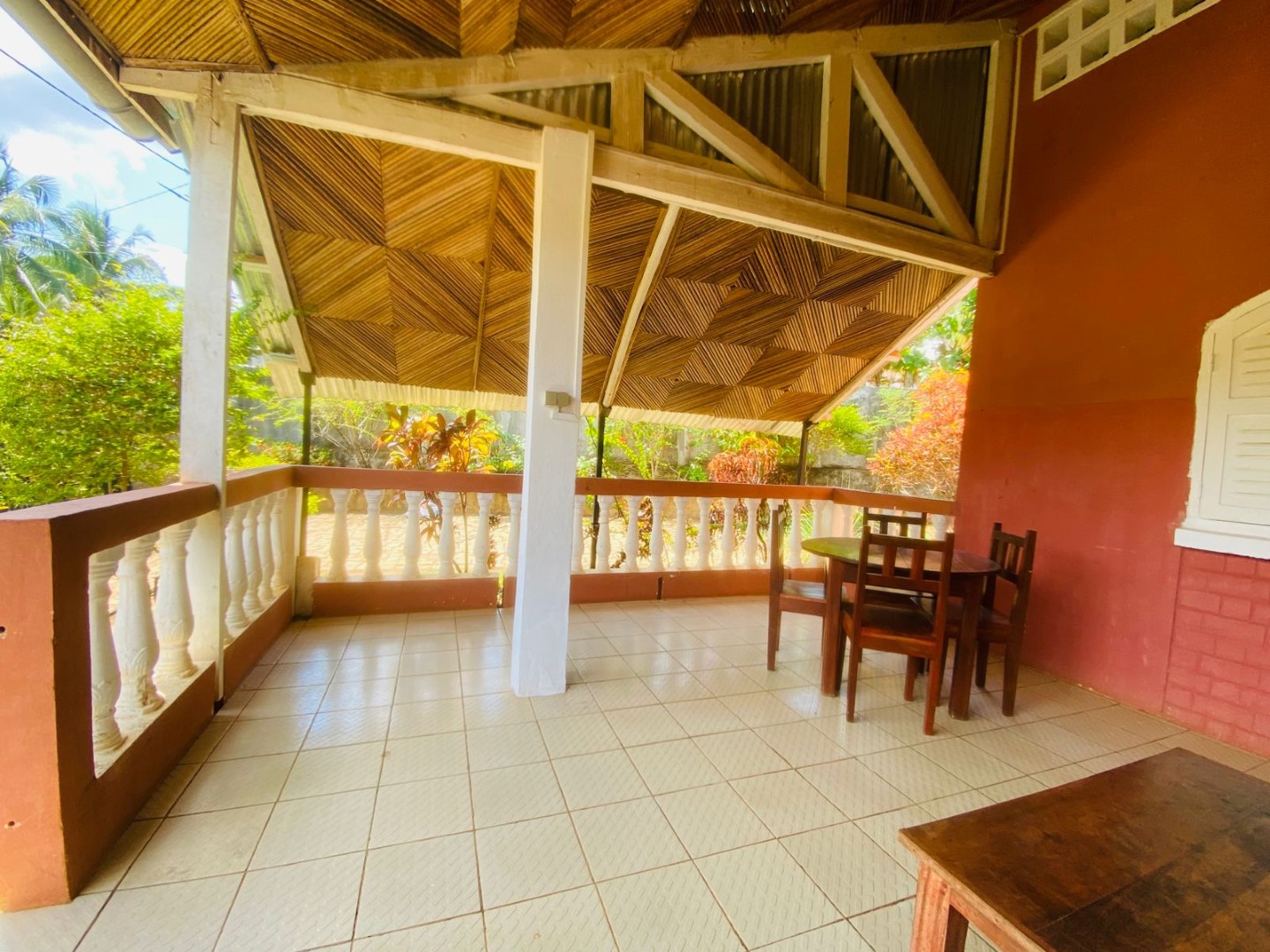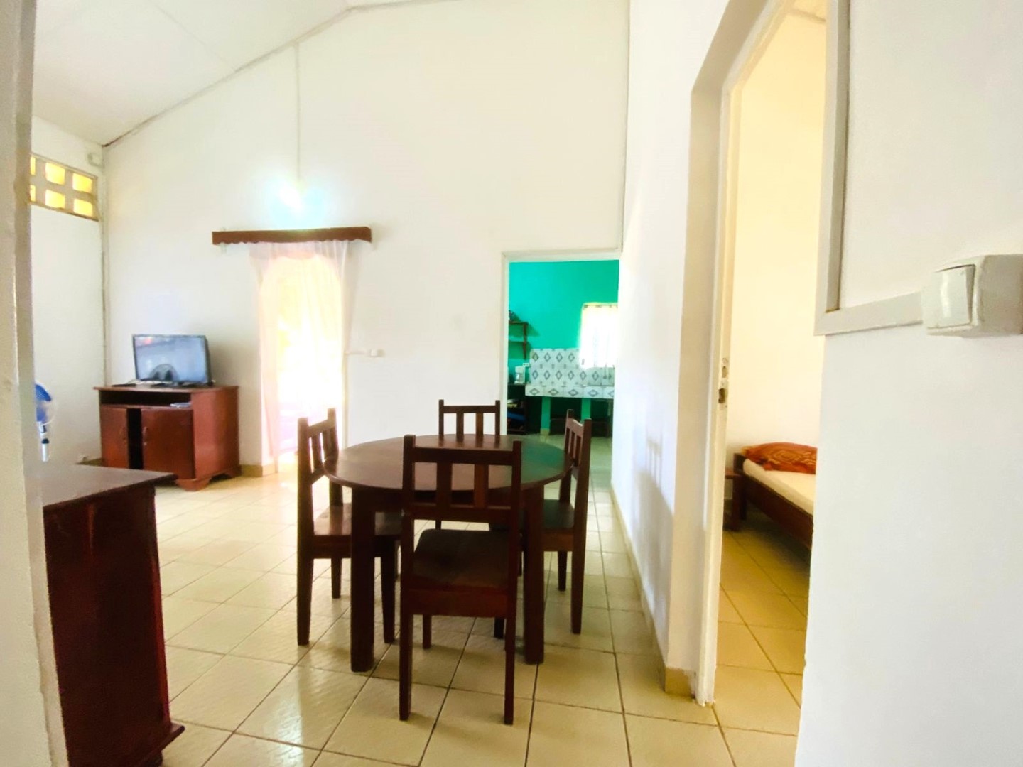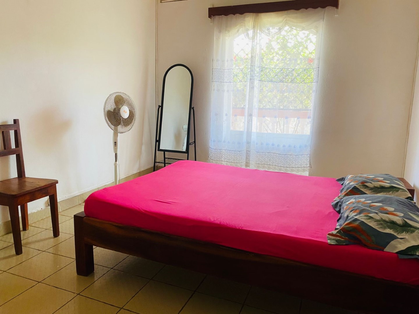 À louer : charmante maison meublée avec joli jardin clôturé, idéalement située en bordure de route goudronnée, offrant un accès facile et un cadre de vie agréable.