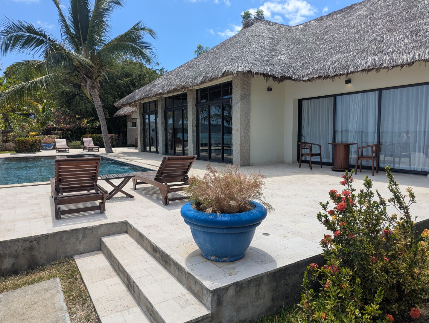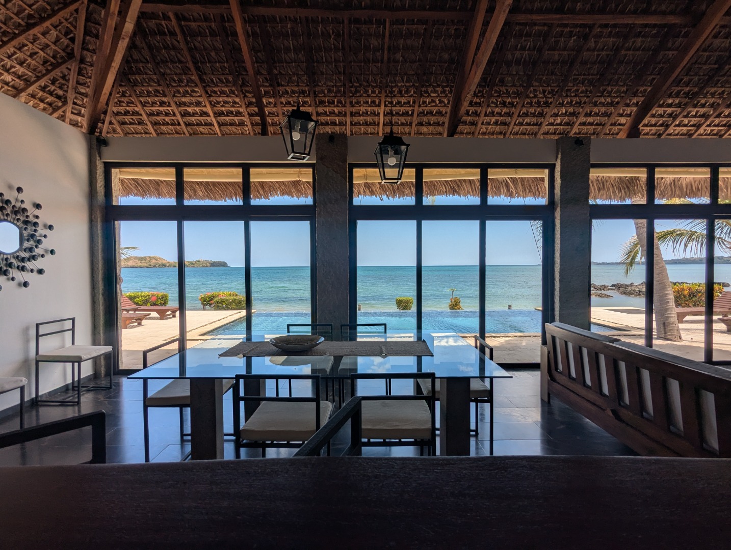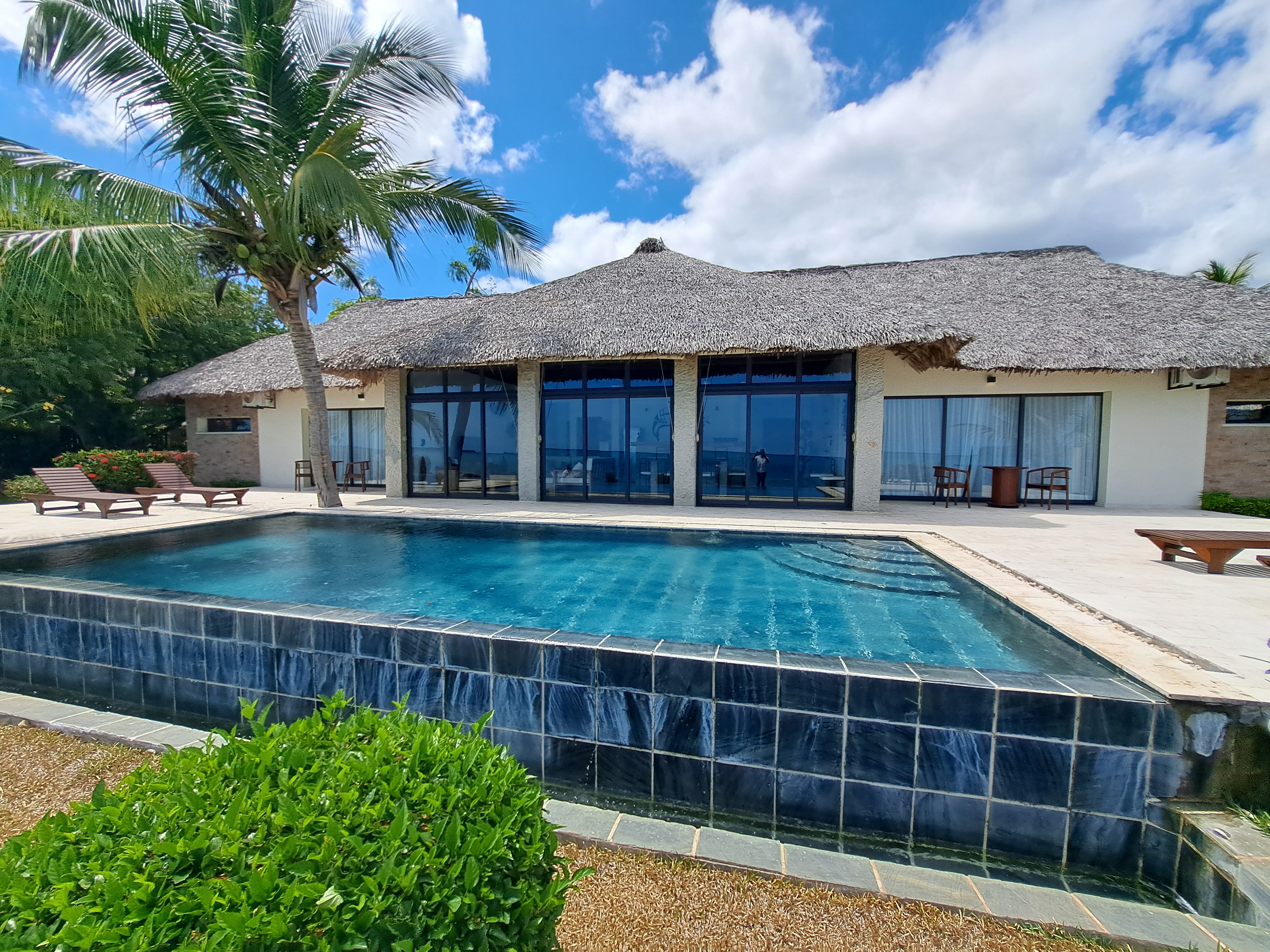 - 1 grand séjour offrant une vue sur la plage et piscine avec cuisine ouverte.