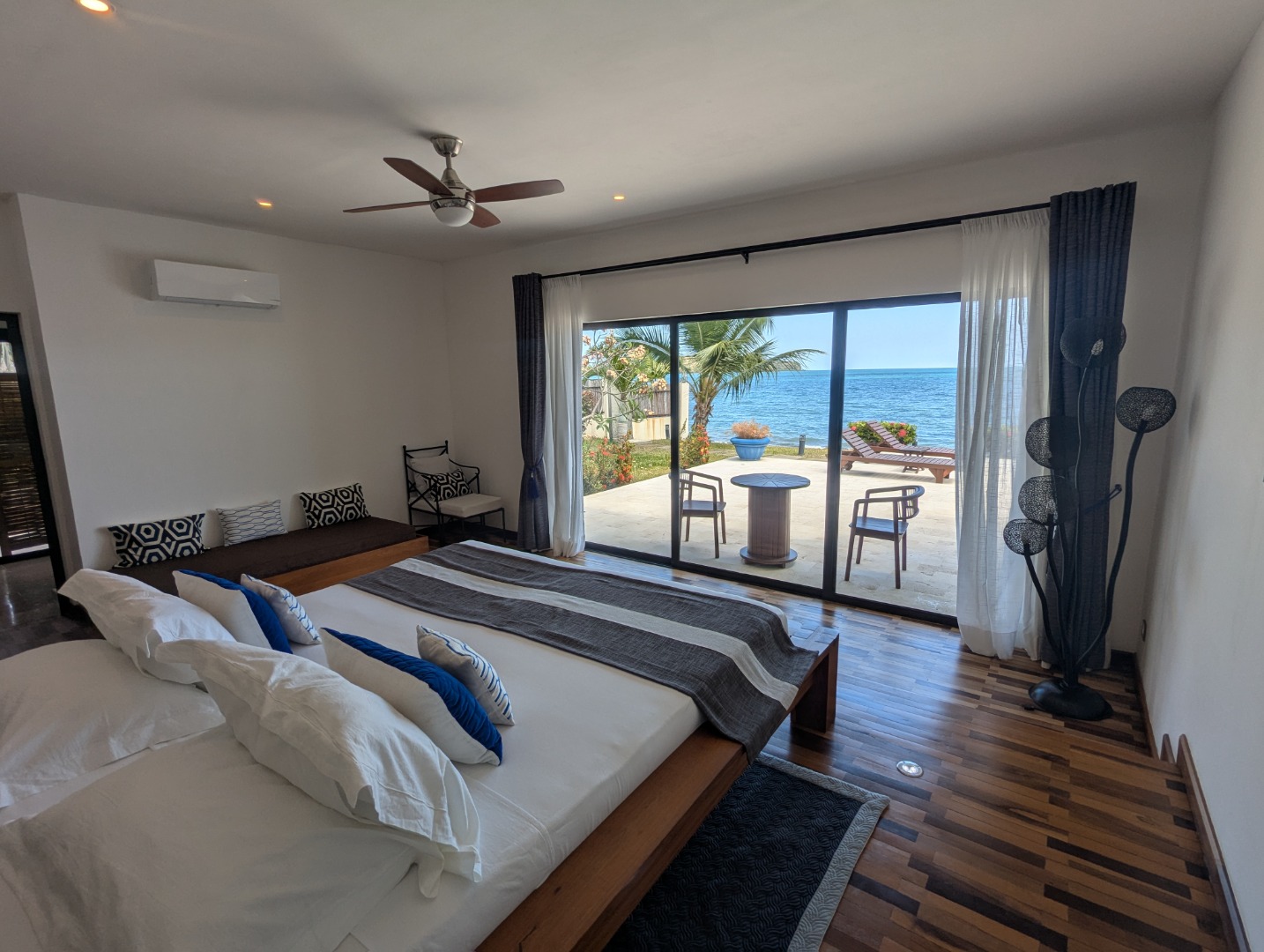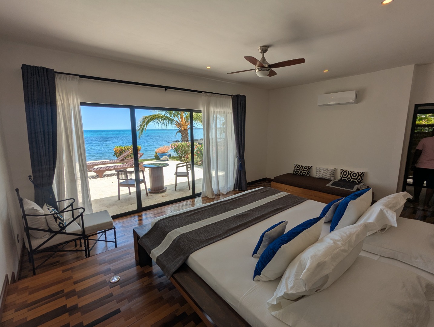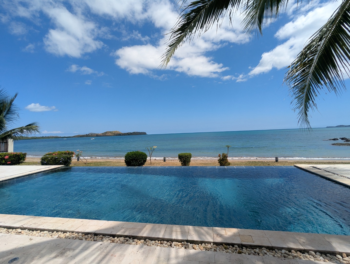 - 1 grand séjour offrant une vue sur la plage et piscine avec cuisine ouverte.