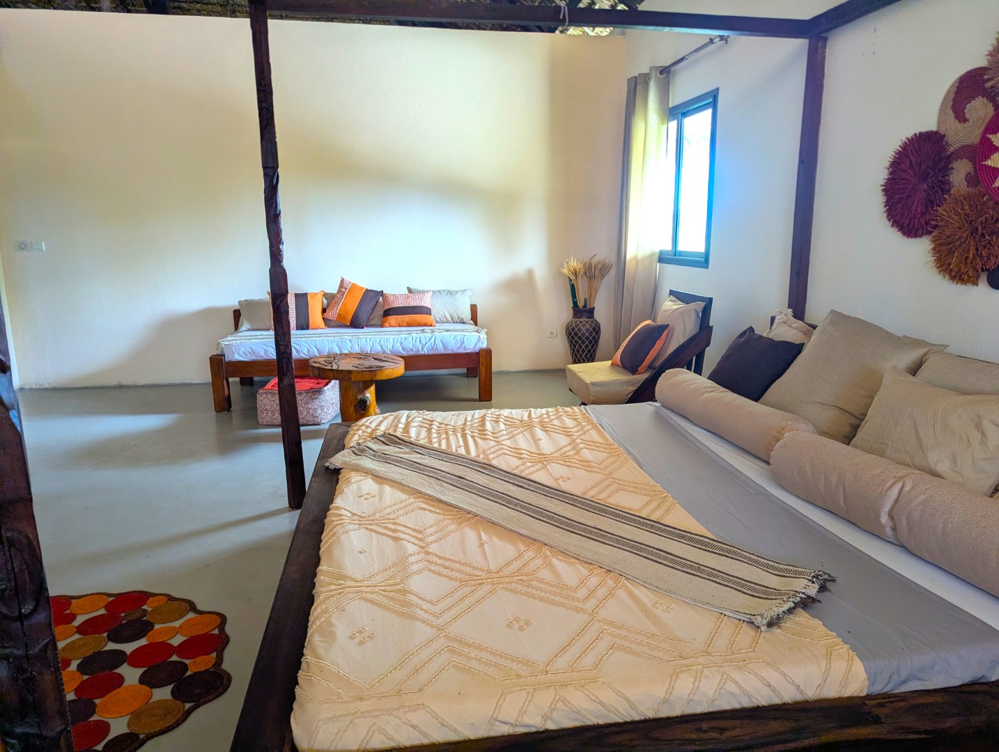 -3 chambres au total, dont 2 chambres avec salles de bains privatives (baignoire) et toilettes
