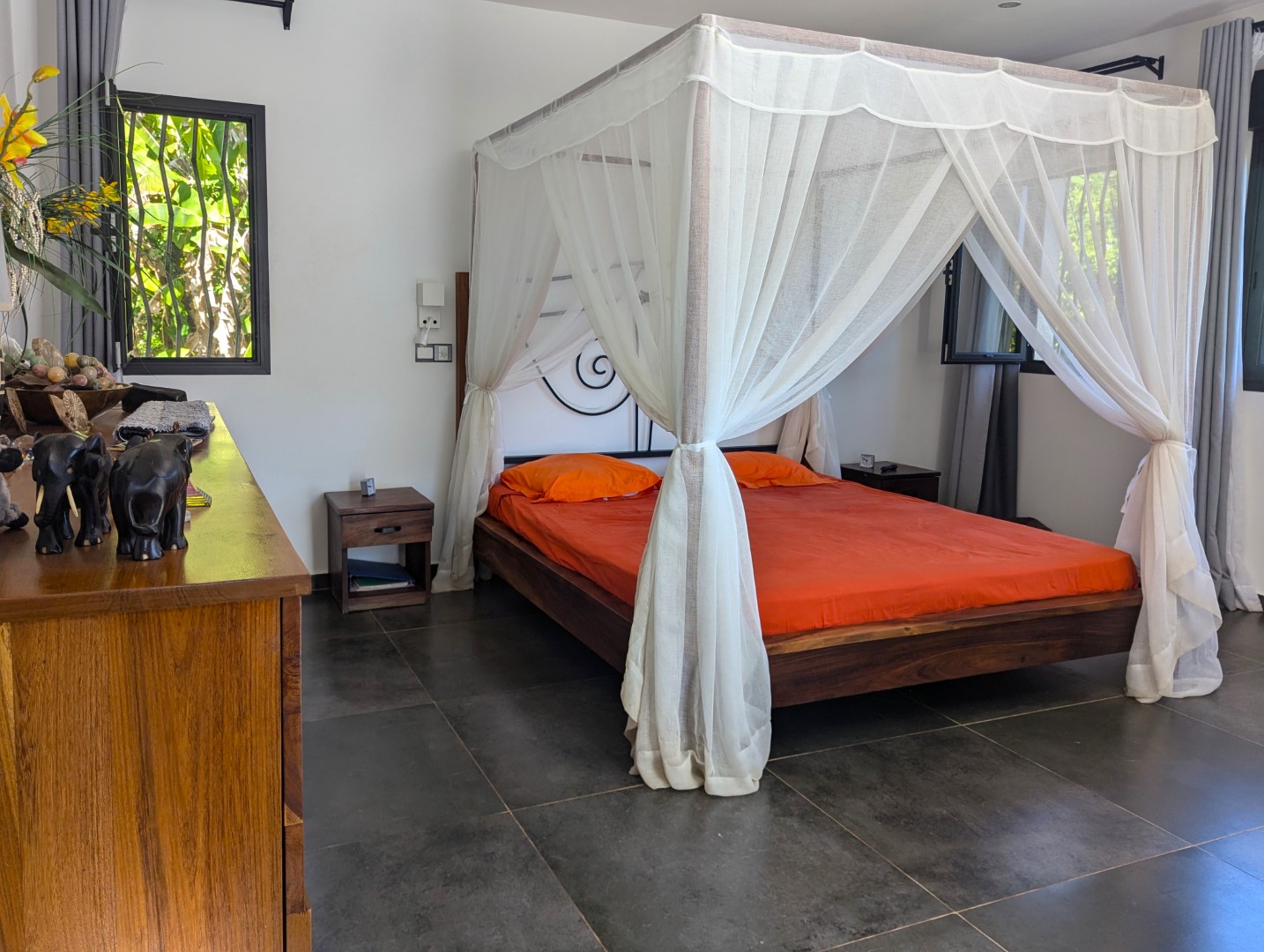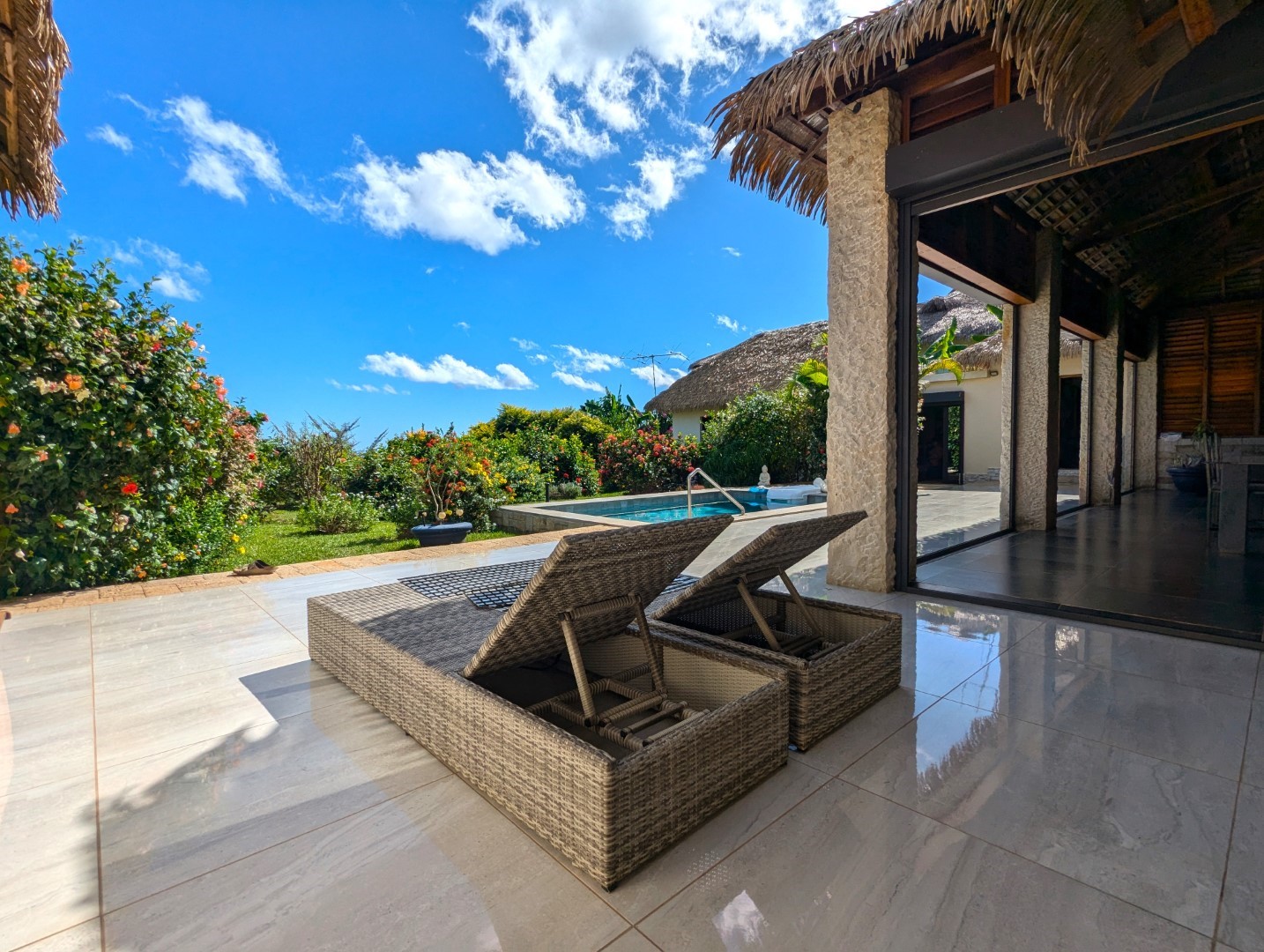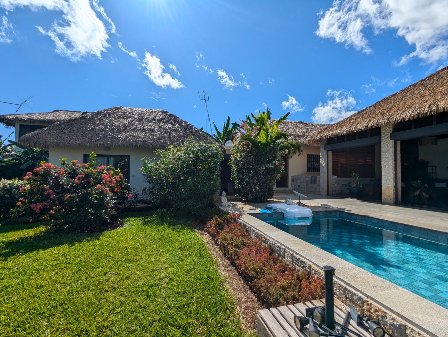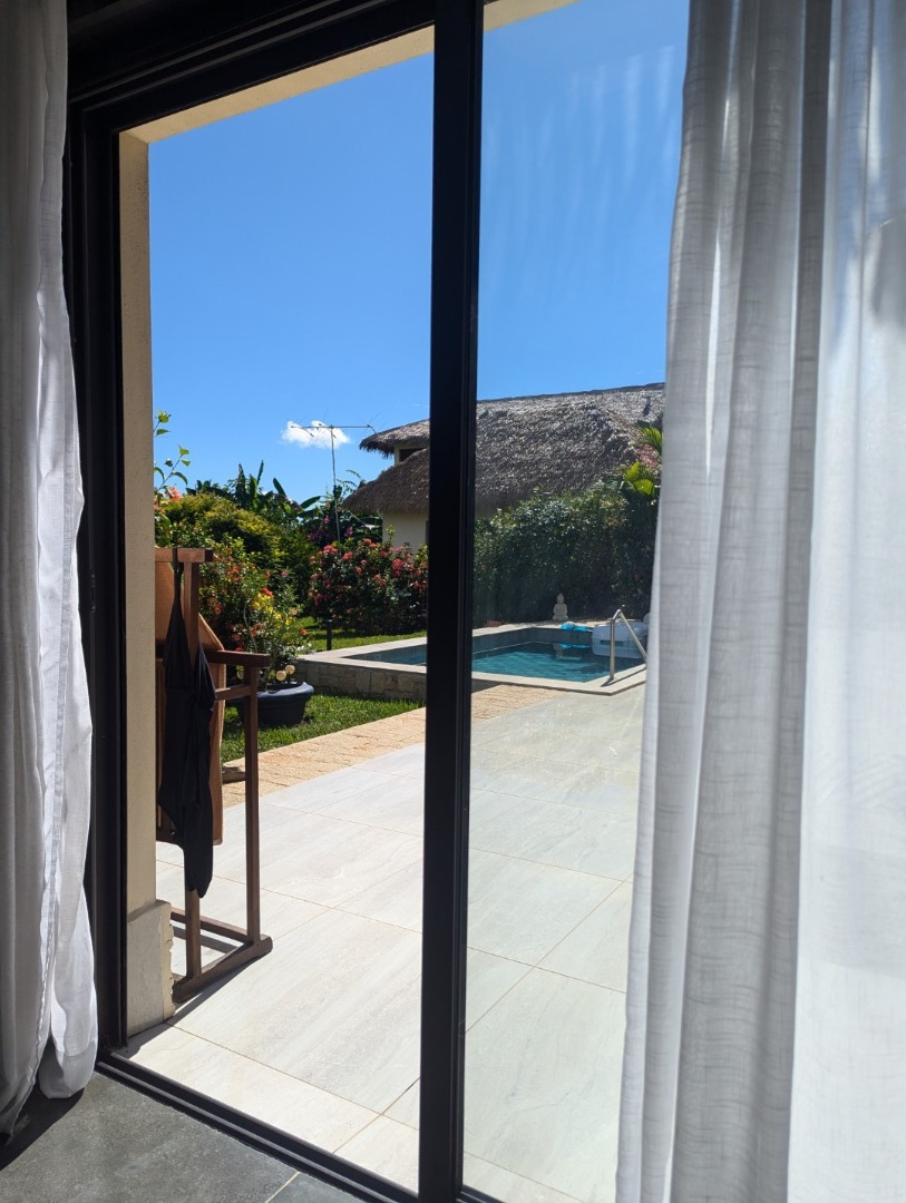 - 1 chambre climatisée donnant sur la piscine (23 m2)