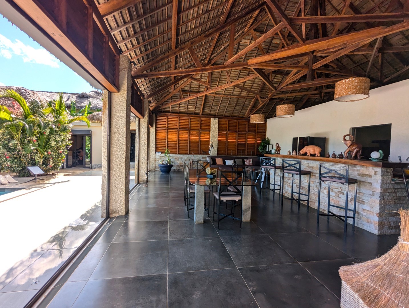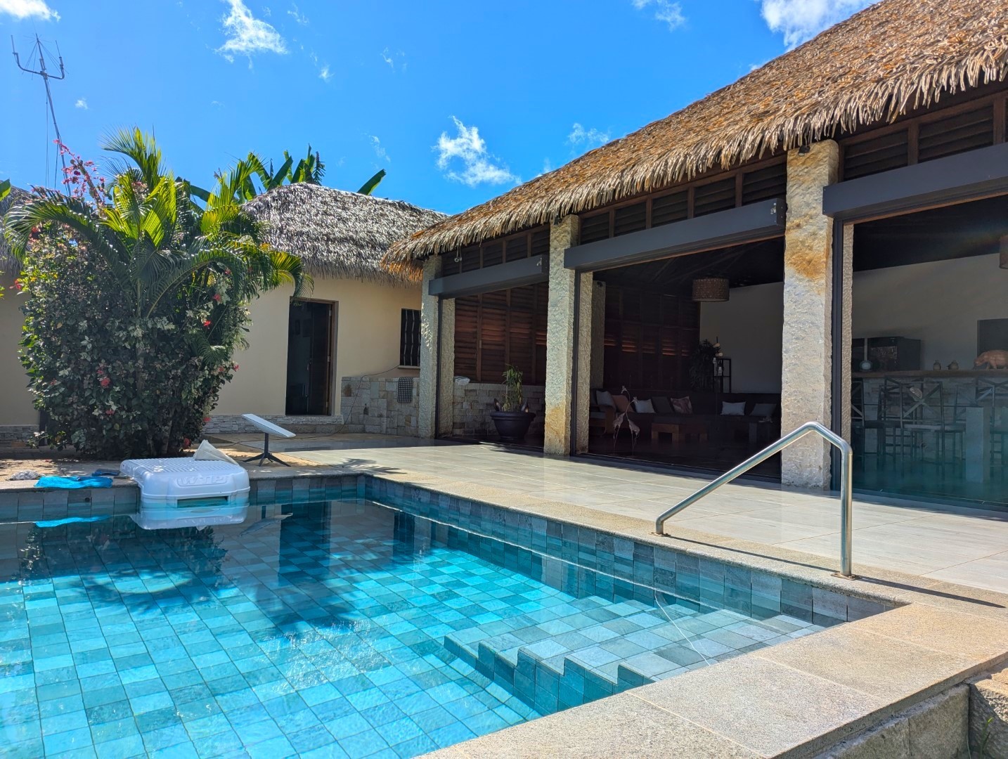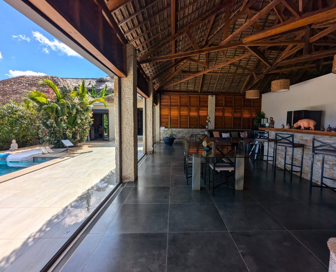 - 1 grand séjour donnant sur la piscine + bar et salon (55 m2)