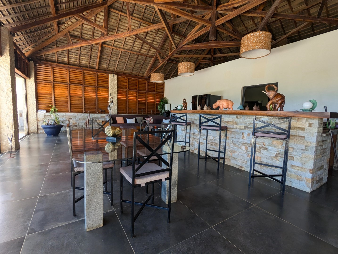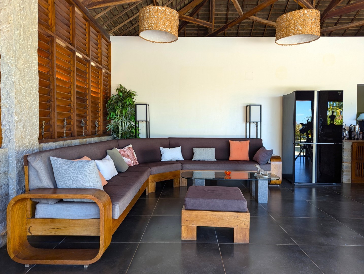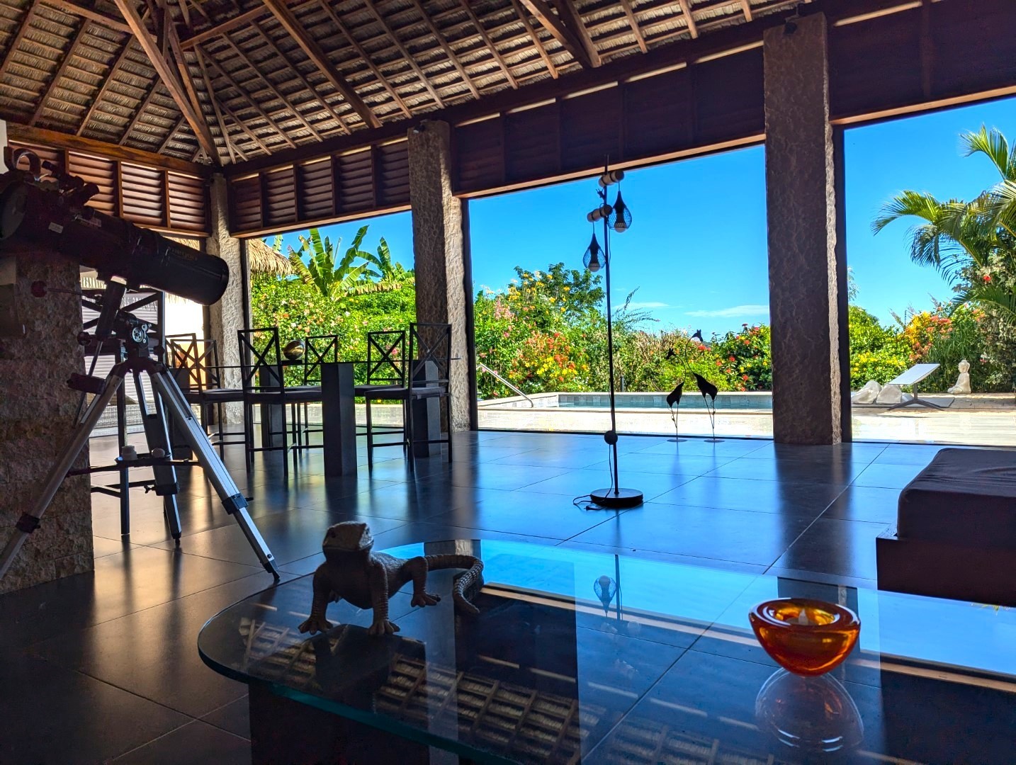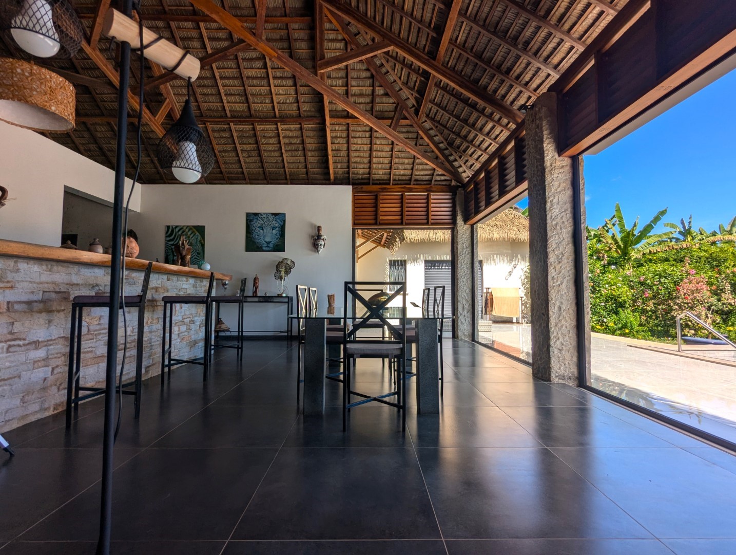 - 1 grand séjour donnant sur la piscine + bar et salon (55 m2)